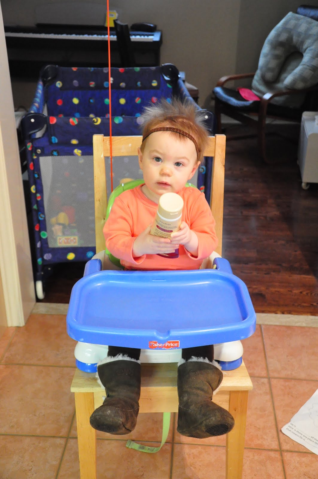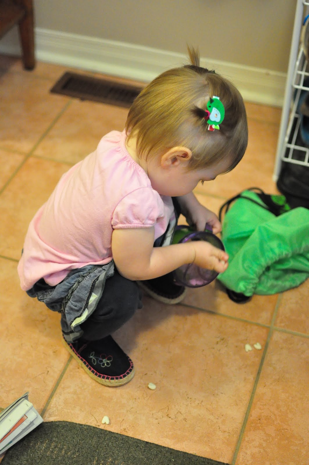 – Cleaning up her spilled snack – good thing she’s trained, this happens a lot :D She is actually sitting on my lap saying “Uh oh! Mess! Kiki mess!”.